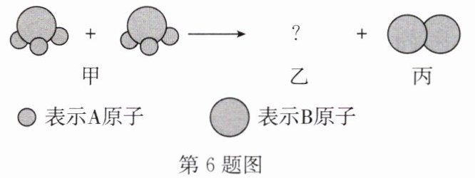 6. B 如图所示,两个甲分子反应生成三个乙分子和一个丙分子,则从图示获得的信息中,不正确的是 (
