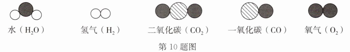10. B 观察下列分子模型,将这些模型拆开,把同类的原子分别放在一起,共有类。