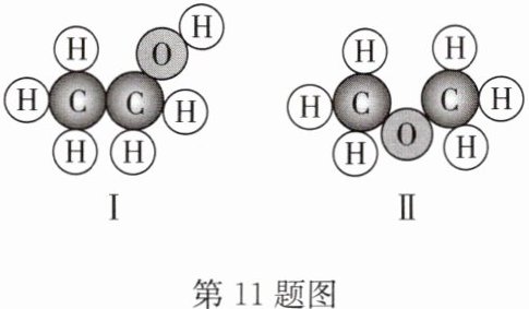 11. B 如图所示是生活中两种常见的物质的分子模型图,请你仔细观察后回