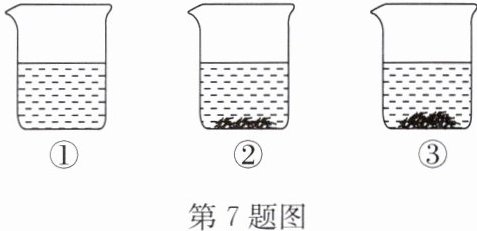 7.B 点拨:①烧杯中无固体物质,溶液可能不饱和也可能恰好饱和;②③烧杯同温度,都有固体剩余,都是饱和溶液,溶质质量分数相等;②中温度升高溶解的固体可能增多,也可能减少,则溶液质量可能增大,也可能减小;③恒温条件下蒸发溶剂,溶液还是饱和溶液,溶质质量分数不变。