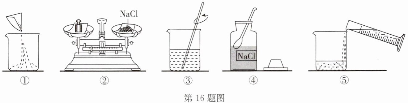 16. A 如图是配制100g溶质质量分数为12.5%的NaCl溶液的实验操作示意图。