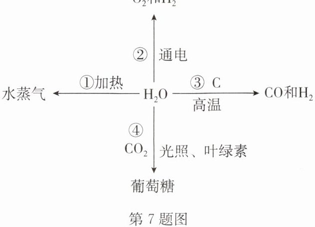7. (2024·镇江市期中)如图为$H_{2}O$的转化和利用。下列说法不正确的是 (