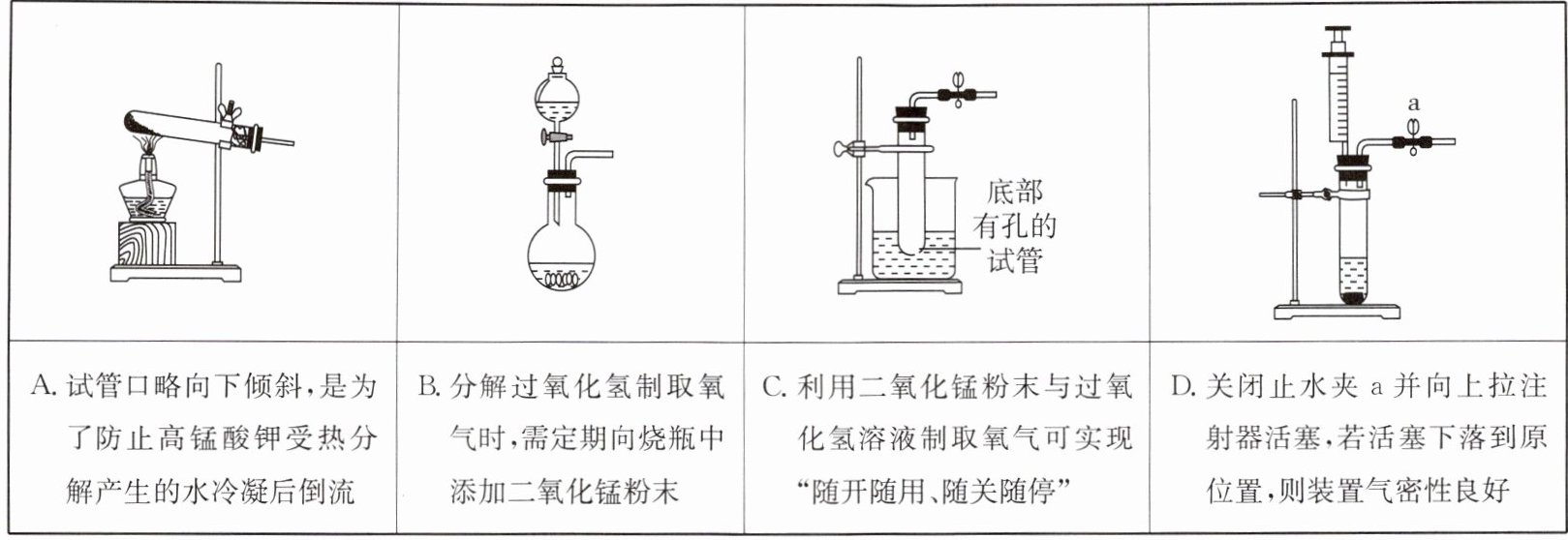 6.B 实验室常用如选项 A、B 所示的发生装置制取氧气,小金又设计了如选项 C、D 所示的装置用于制取氧气,下列相关叙述合理的是 (
