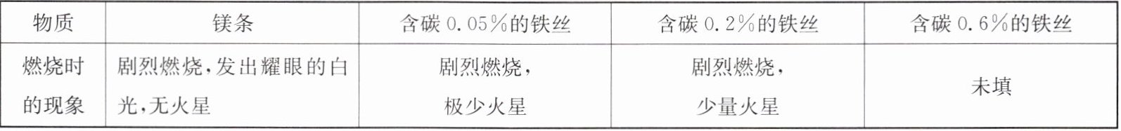 Ⅰ. 小明对图 1 铁丝在氧气中燃烧为什么会火星四射进行探究。下表是他将纯镁条和不同含碳量的铁丝(镁条和铁丝直径均为 0.4 mm)放入氧气中燃烧时的实验现象的记录。请你分析回答: