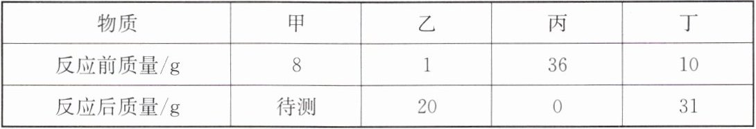 2. A 在一密闭容器中,有甲、乙、丙、丁四种物质,在一定的条件下,充分反应,测得反应前后各物质质量如下表: