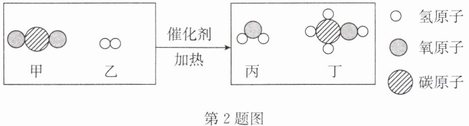 2. A (2024·靖江市期末)二氧化碳在一定条件下能转化为甲醇($CH_{3}OH$),反应的微观示意图如图所示。下列有关说法错误的是 (