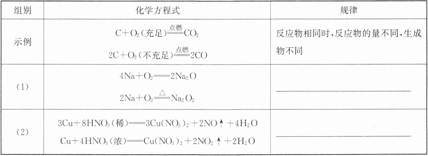 7. B 比较、分析、归纳是学习化学的重要方法。通过比较可以发现相同的反应物在不同外界条件下,会发生不同的反应。请参照示例归纳反应规律: