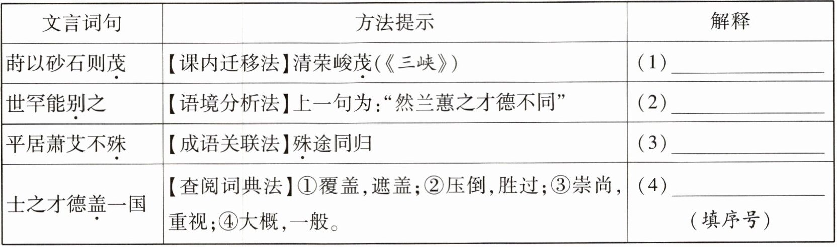 |世罕能别之|【语境分析法】上一句为:“然兰蕙之才德不同”|(2)______|