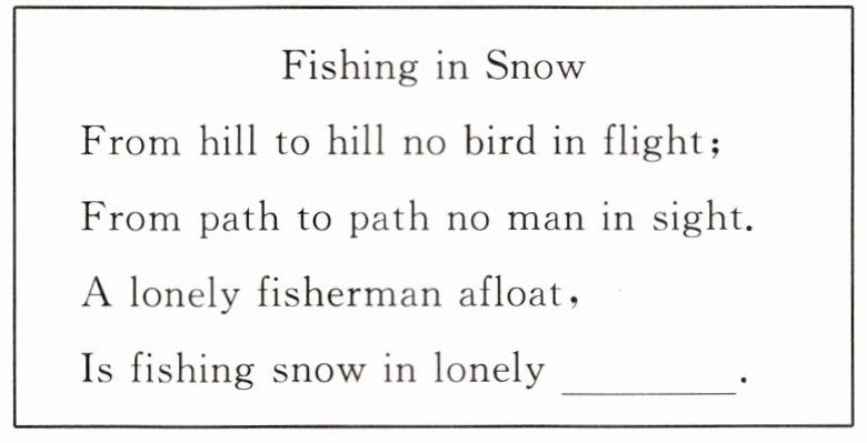 )5. Read the poem “Fishing in Snow” by Liu Zongyuan. The word “afloat” rhymes with ______.A.joke