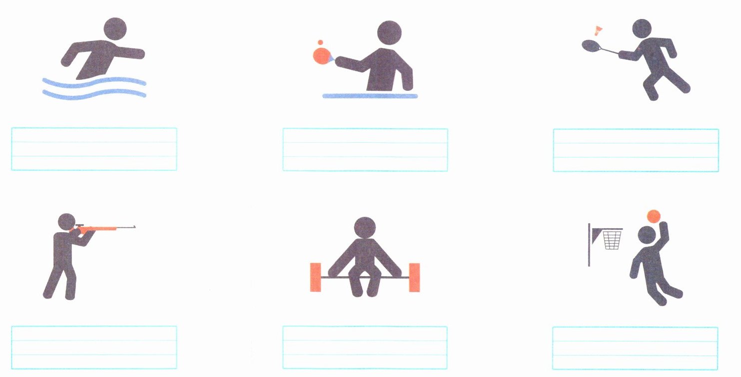 九 拼 音 运 动 会 。请 你 认 真 观 察 下 列 图 片 ,用 拼 音 写 出 运