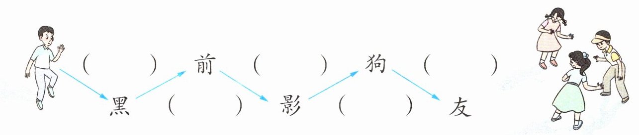 一 给汉字标对读音,就能踩到小朋友的影子了。