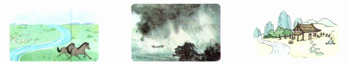 示例:1. ① 草原风光 ② 黑云翻墨 ③ 绿树环村 2. 笔墨纵横的水墨画 ; ; 。 3. 诗画中国