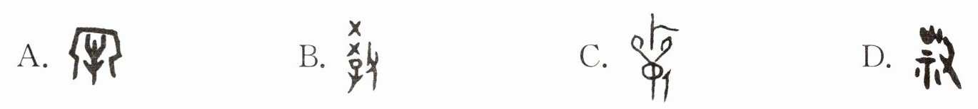 1. (2025·温州洞头区期末)文成县“太公祭春祭”随“春节”载入世界非遗史册,“祭”字的甲骨文描绘了一只手拿着鲜肉放在祭台上的场景(见右图)。下列可能是甲骨文“祭”字的一项是( )