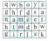 1. 什么 2. 我的名字 3. 很高兴认识你!4. 孩子们 5. 你叫什么名字?