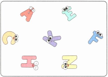一 仔细观察图片,看看从A~N少了哪些字母,请按照字母表顺序写出所缺字母的大小写形式。