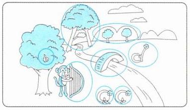 一 圈出隐藏在下面图片中的字母,并按字母表顺序将其写在四线三格中。