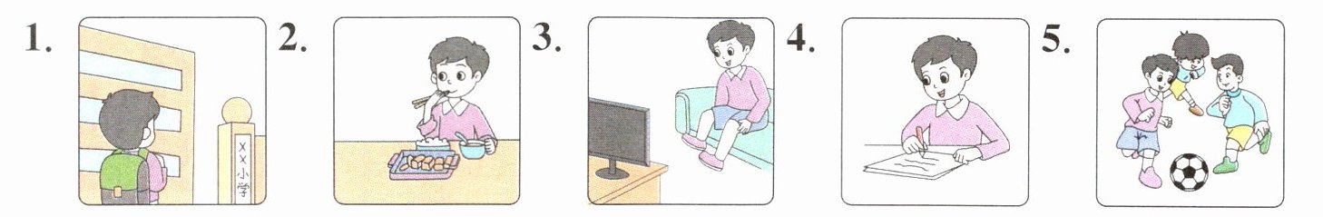新趋势 句意理解 读句子,在图片下方用阿拉伯数字写出相应的时间点。