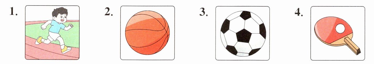 1. run 2. basketball 3. football 4. ping-pong 5. try 6. again 7. like 8. play