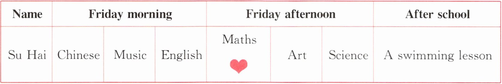 阅读苏海周五的课程活动安排表,帮助苏海完成介绍。