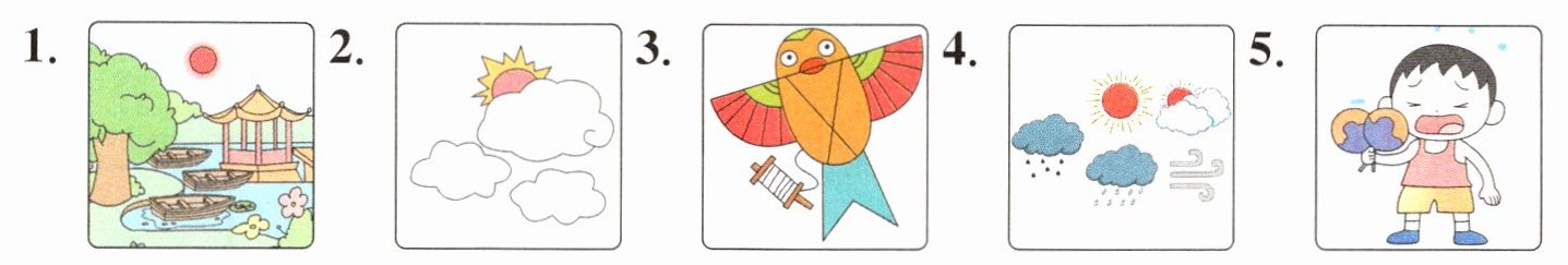 1. park 2. cloudy 3. kite 4. weather 5. hot