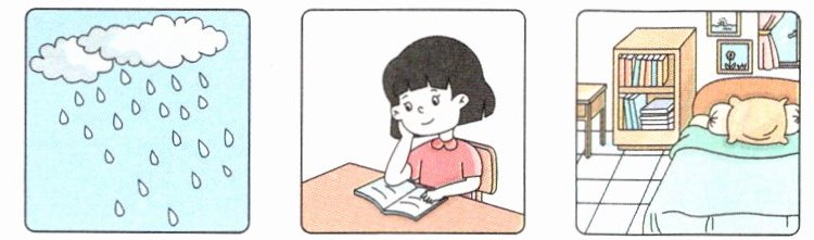 1. It is windy. I fly a kite in the park. 2. It is sunny. I play football in the playground. 3. It is rainy. I read books in the bedroom.