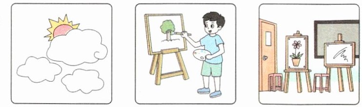 It is cloudy. I draw a picture in the art room.