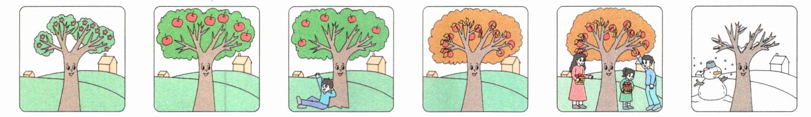 F. Winter comes. It is cold. I have no apples or leaves now, but I like winter because of the white snow.