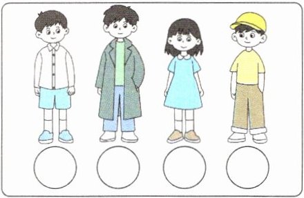 看图,选择与人物穿着相符的英文描述,将序号写在圆圈里。