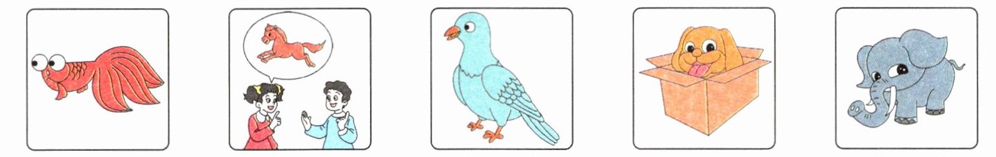 1. animal friends 2. have no legs or arms 3. run and jump 4. a big mouth 5. carry an umbrella 6. give it a cake 7. sunny weather 8. eight legs