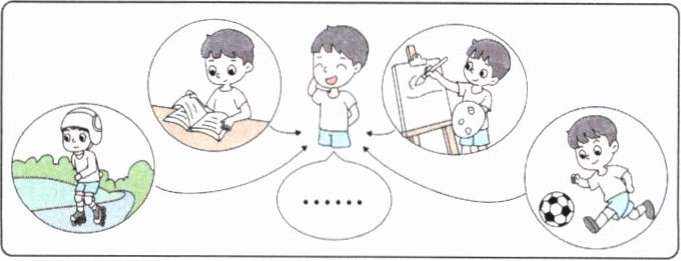 Jacky 想要跟网友说说他丰富的周末生活,请你根据图片提示,帮助 Jacky 来介绍一下吧!