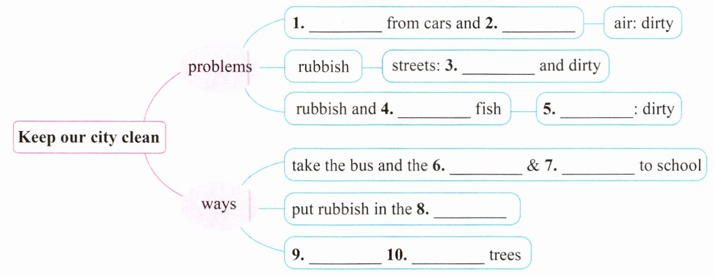1. dead,there,rubbish,was,in,the,water,the,and,all,fish,were(.)