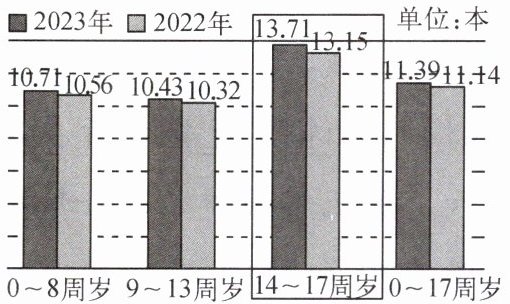 2022、2023年未成年人人均图书阅读量