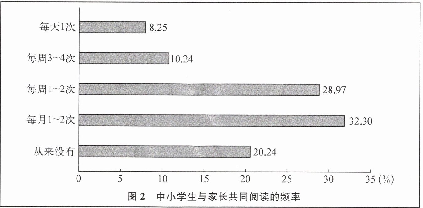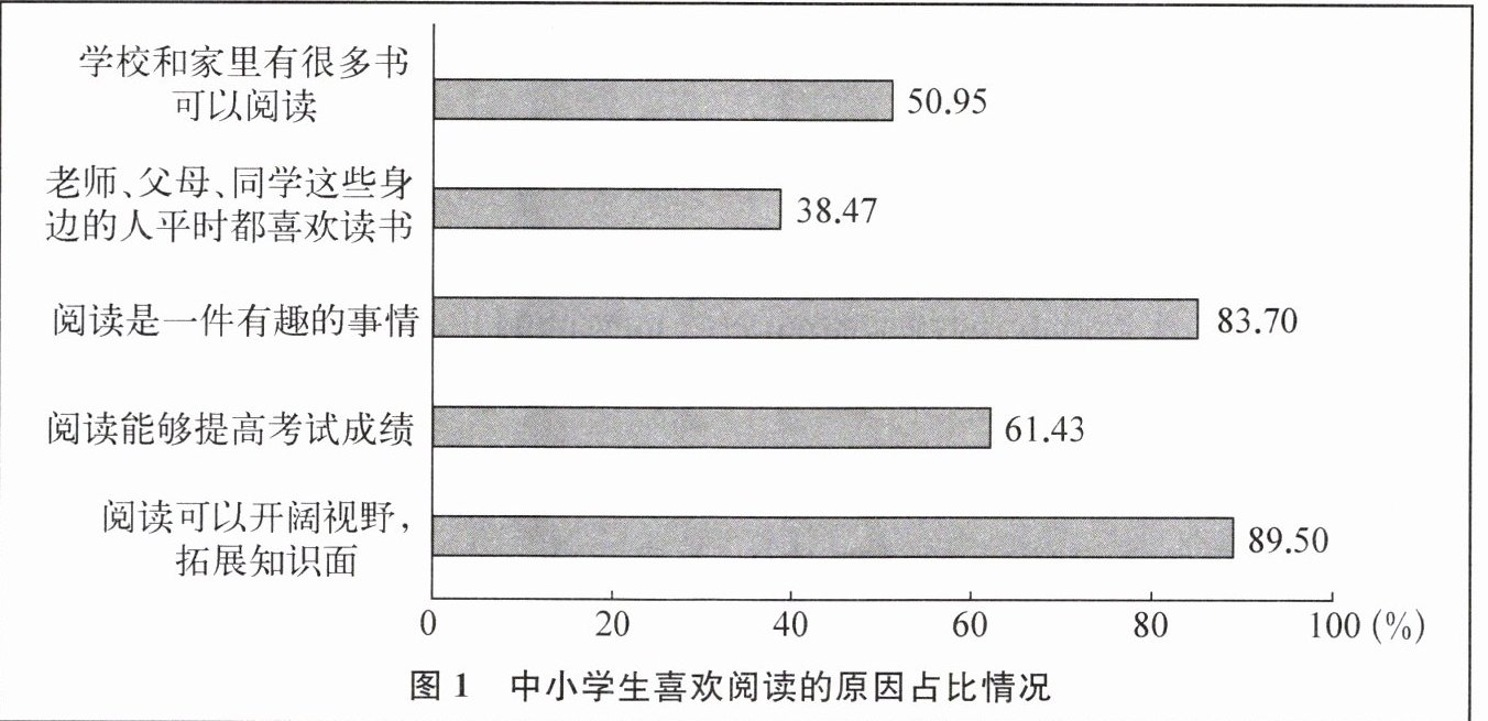 1. ①家庭和学校在培养中小学生的阅读兴趣和习惯方面具有重要作用;②中小学生喜欢阅读的最主要原因是阅读可以开阔视野,拓展知识面;③大部分中小学生的阅读兴趣比较浓厚;④大部分家庭可以做到每月进行亲子共读,其中部分家庭的亲子共读频率较高。(每点2分,答出三点即可)