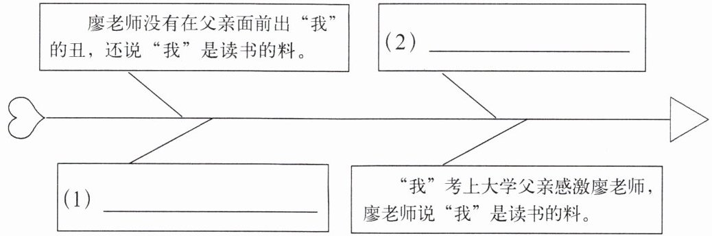 4. 文中廖老师多次说“我”是读书的料,阅读文章,仿照示例,填写下面的思维导图。(4分)