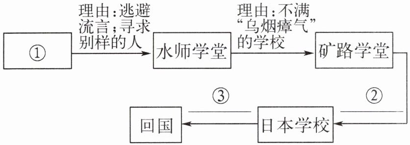 (1)①三味书屋(1 分) ②理由:学习更先进的医学知识(或"救治像我父亲似的被误的病人")(1 分) ③理由:弃医从文,决心用文艺救治国人的灵魂(1 分)