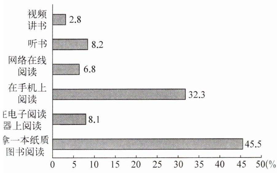 2.成年国民倾向的阅读方式多种多样,(2分)其中拿一本纸质图书阅读占比最多。(2分)