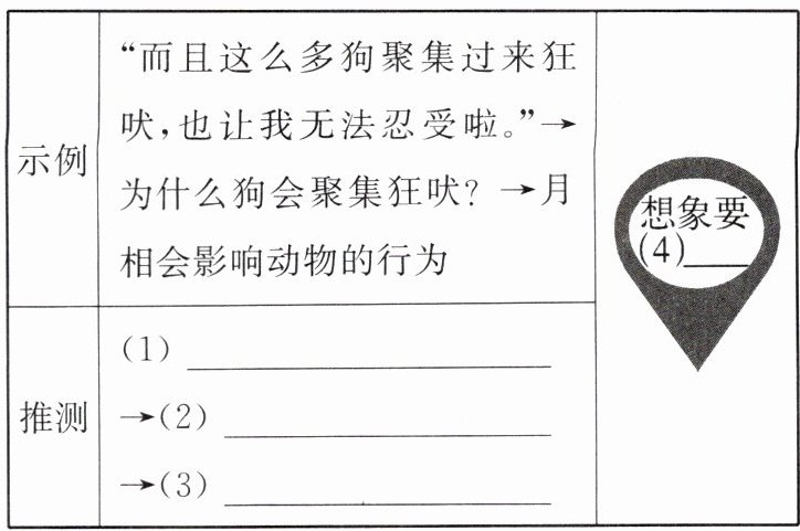 3. 本文引发了同学们的好奇心。借助下面的知识卡片,参照示例,完成一条关于月亮的想象推测,并关联题组完成第(4)空。(4分)