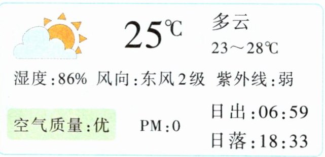 1. 结合西沙群岛某天的天气状况(见右图),下列给游客的建议中合理的是哪一项?( )