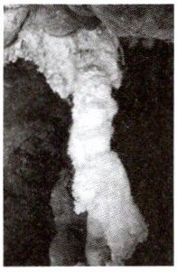 位于北京市房山区佛子庄乡的银狐洞与石花洞一样,同为岩溶洞穴。洞内沉积物种类繁多,形态丰富,尤以“银狐”最为著名。它位于银狐洞的最深处,是一个大型晶体,整体长约两米。它的上部连接洞壁,较为粗大,底部距离地面两米左右,相对细小,犹如一只银狐倒挂在洞顶。它的表层遍布约两寸长、丝绒状、洁白如雪的毛刺,就像白色的绒毛。