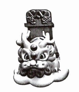……一曰囚牛,好音乐,胡琴上所刻是。二曰睚眦^{①},刀柄龙吞头是。三曰嘲风,性好险,殿角走兽是。四曰蒲牢,好鸣,钟上兽纽是。五曰狻猊^{②},好坐,佛座狮子是。六曰霸下,好负重,碑座兽是。七曰狴犴^{③},好讼,狱门所画兽是。八曰赑质^{④},好文,石碑两旁所画龙是。九曰蚩吻^{⑤},好吞,殿脊兽头是。(清·褚人获《坚瓠集》)