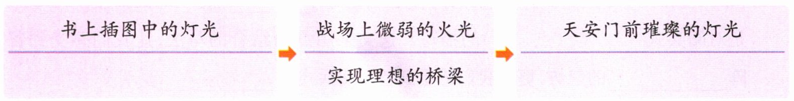 书上插图中的灯光 → 战场上微弱的火光 → 天安门前璀璨的灯光