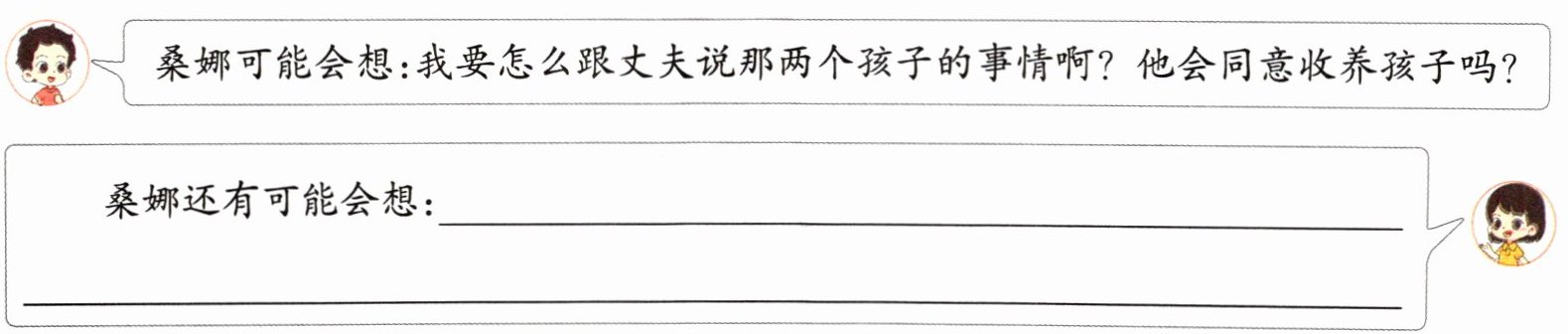五、[素材讨论]同学们围绕《穷人》中“桑娜第一次沉默时会想些什么”展开讨论,请你也说一说。