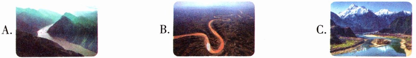 (1)[教材核心题]诗句中的“九曲”说明了黄河______的特点,“万里”写出了黄河______的特点。这两句诗写出了黄河______的气势。