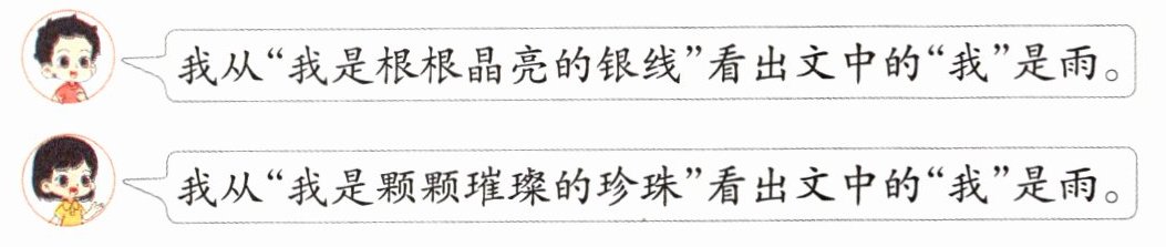 1. 从文中哪些地方可以看出“我”是雨?请和同学们交流。