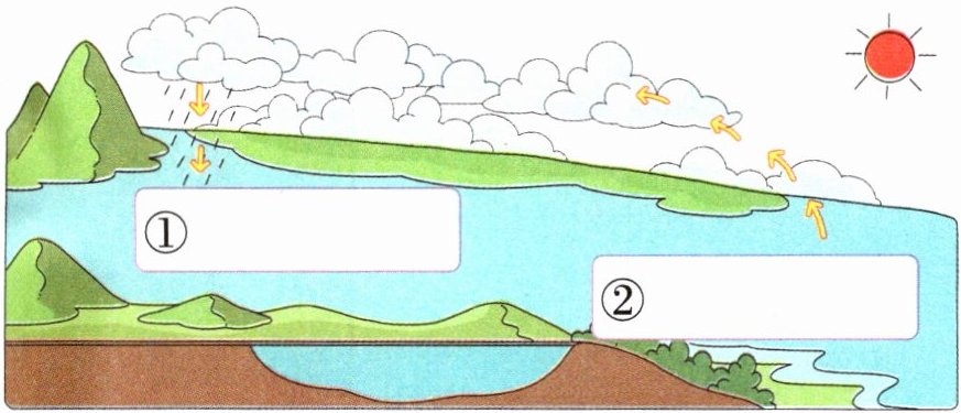 3. [新趋势·学科融合]地球上的水在陆地、海洋及大气之间处于不间断的循环之中。文中的画线句以诗意的语言描述了水循环的部分过程,请将“大海的叹息”“天空的泪水”填入右图。