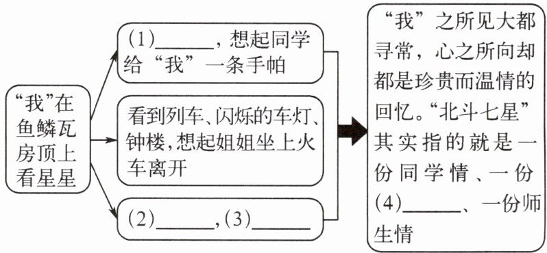 “我”之所见大都寻常,心之所向却都是珍贵而温情的回忆。“北斗七星”其实指的就是一份同学情、一份(4)______、一份师生情
