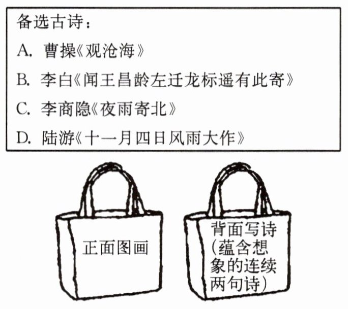 |备选古诗:A. 曹操《观沧海》B. 李白《闻王昌龄左迁龙标遥有此寄》C. 李商隐《夜雨寄北》D. 陆游《十一月四日风雨大作》|