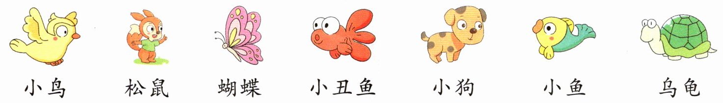小鸟 松鼠 蝴蝶 小丑鱼 小狗 小鱼 乌龟