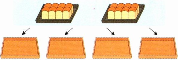 6. (模型意识)请你把烤盘里的蛋糕平均放到4个格子里,移一移,画一画,每个格子里要放(