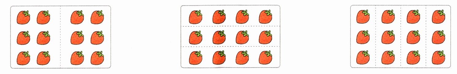 3.(名校期末真题)把12个草莓平均分,每份有几个? 用除法算式表示下面三种平均分的过程。